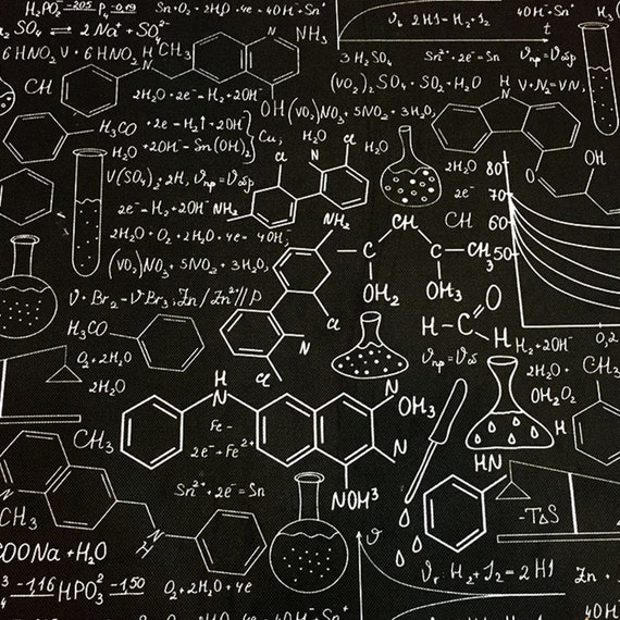 Black And White Chemistry Formula Science Patterned Fabric Etsy